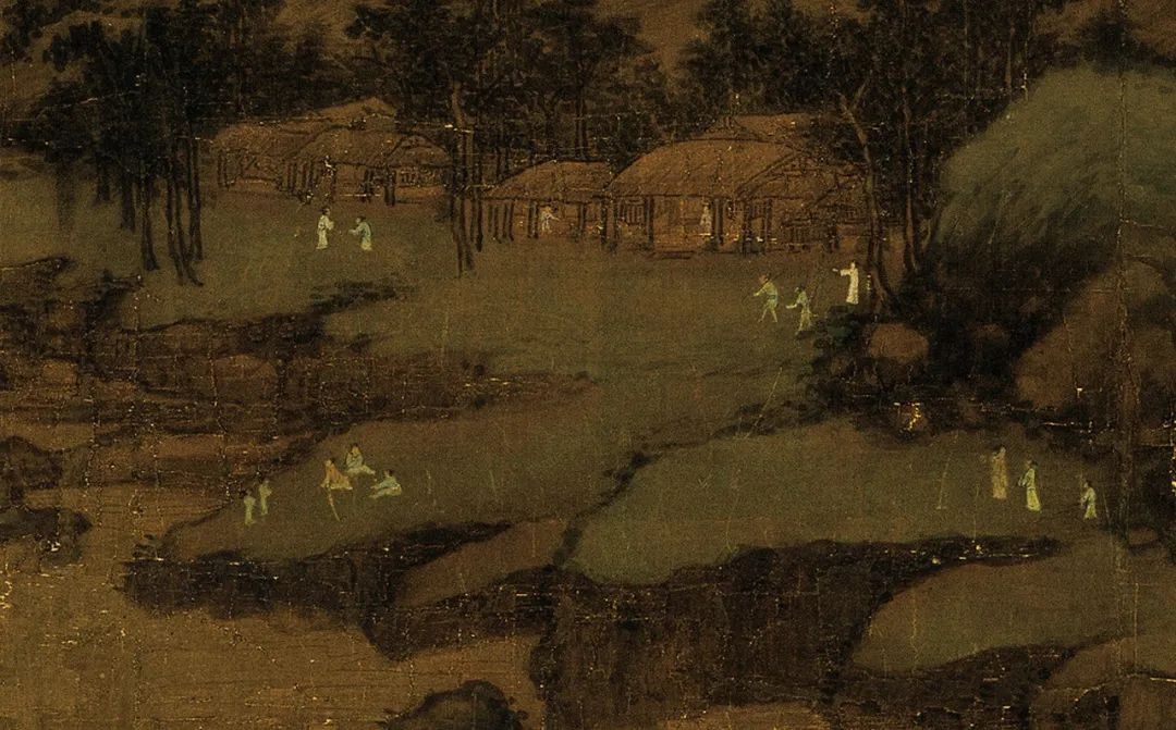 《龙宿郊民图》里,迷茫的大河,岸边房屋几所,郊民十余东谈主,若是不是密致不雅察,他们极有可能是被忽略的,但也就是这些生命的存在才使得整幅画和统共这个词当然更出奇想,但前提是,濒临无限的寰宇,需要领受东谈主本身的轻微。